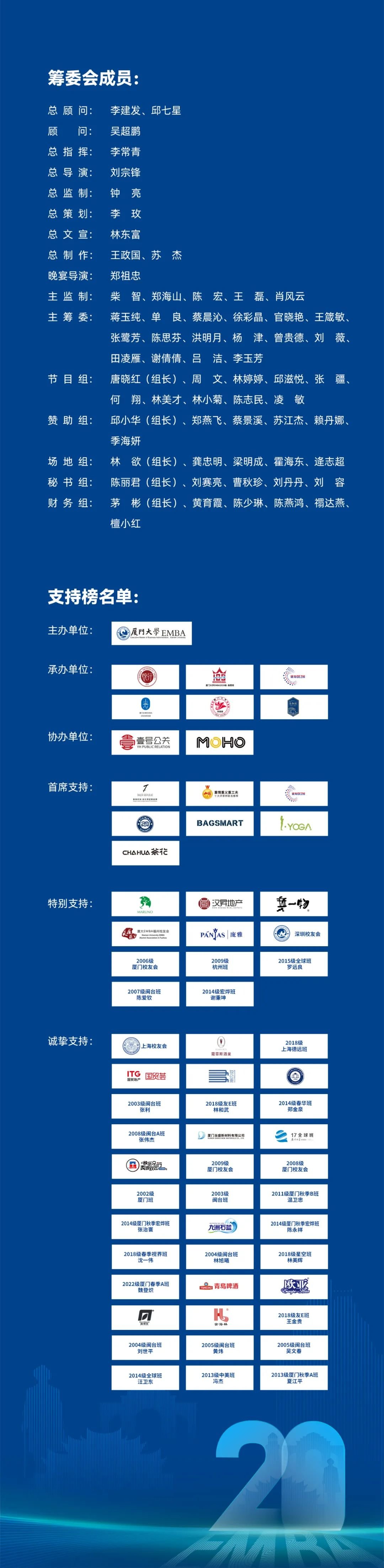 诚挚鸣谢为厦门大学EMBA20周年大会努力付出的所有老师、同学、校友企业们!