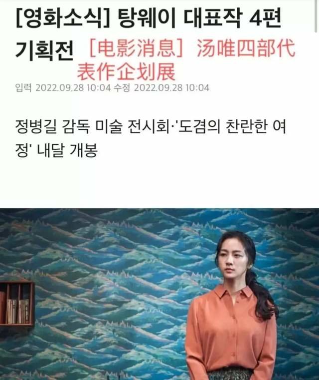 此外,韩国人还为她专门办个人作品影展。韩国的独立影院Artnine在今年十月举办了“演员艺术展——汤唯”专题放映,包含了汤唯的代表作《晚秋》、《北京遇上西雅图之不二情书》、《地球最后的夜晚》以及《分手的决心》共四部电影。