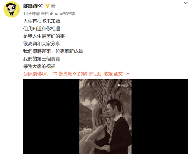 随后,郑嘉颖本人微博也晒出了写真视频,表示:“人生有很多未知数,但我知道和你相遇是我人生最美好的事,很高兴大家分享,我们即将迎来一位家庭新成员,我们的第三个宝宝,感谢大家的祝福。”