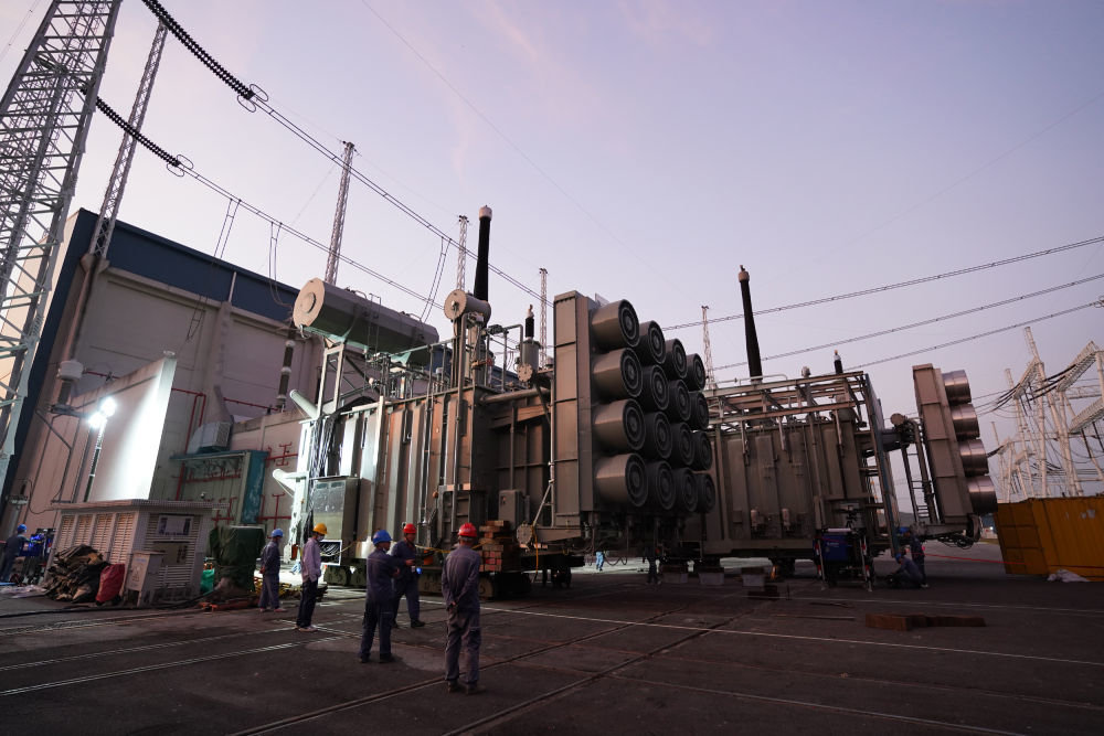 图为换流变压器有载分接开关安装现场。(受访者供图)