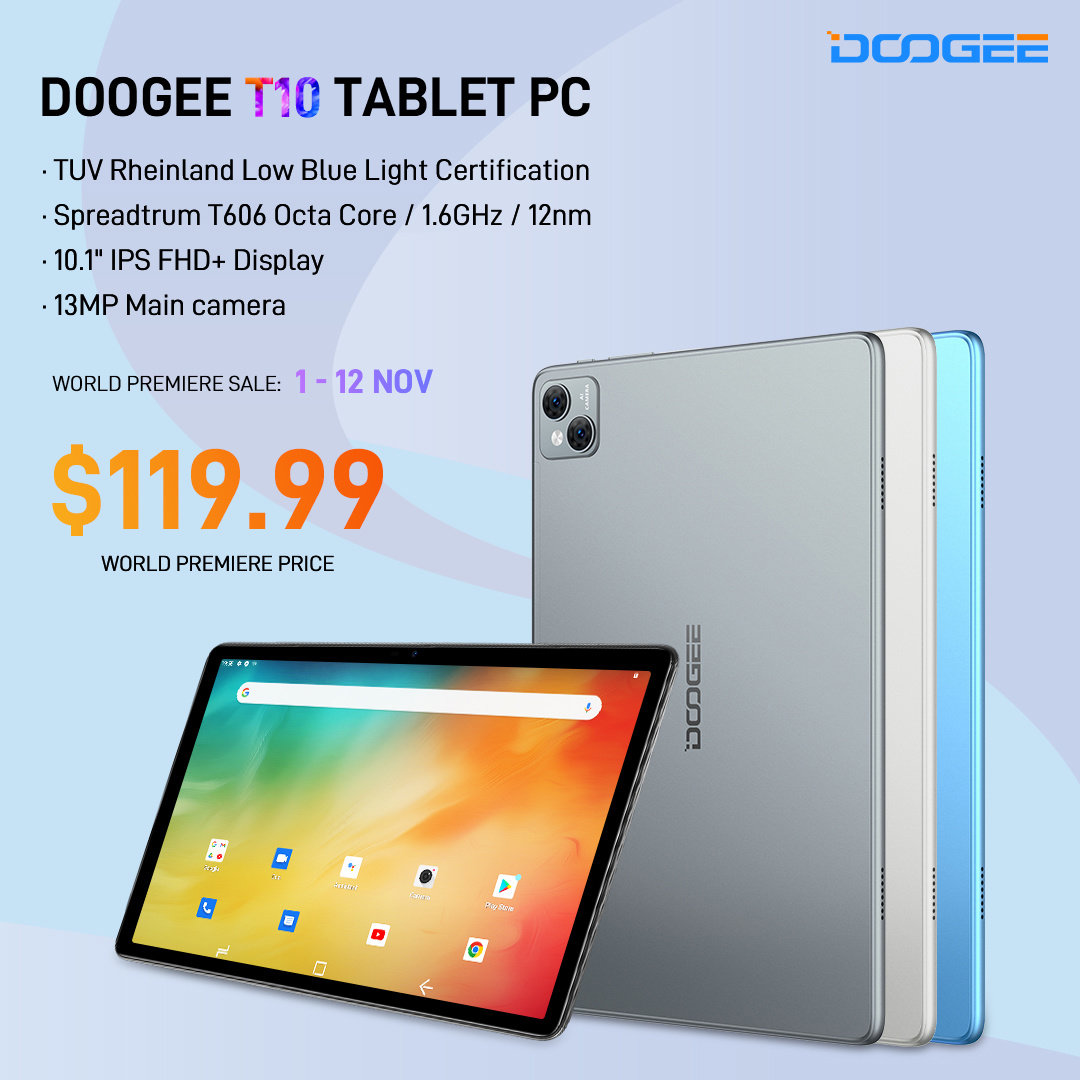 IT之家了解到,Doogee T10 平板电脑首发价 119.99 美元(当前约 863 元人民币),还可选购二合一键盘使用。