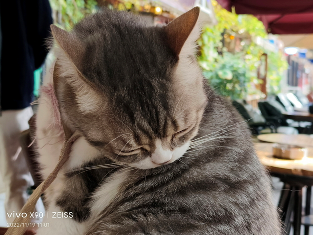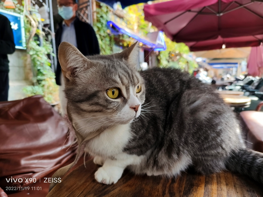 可以看到,在这一组(特别是第二张)的样张中,当被摄物体(猫)快速动作时,X90识别出拍摄场景后,立刻“放弃”了相对小底的长焦副摄,自动切换到底更大、进光量更多的主摄,并配合AI完成了拍摄。由此,也确实做到了定格高速瞬间画面的效果。