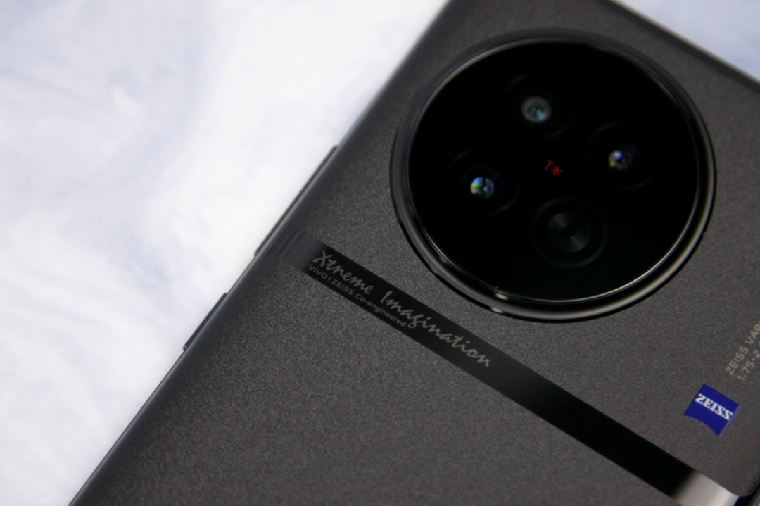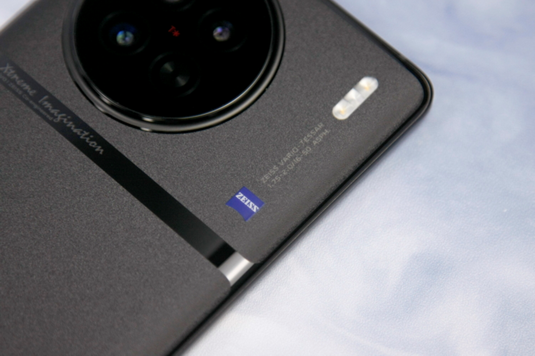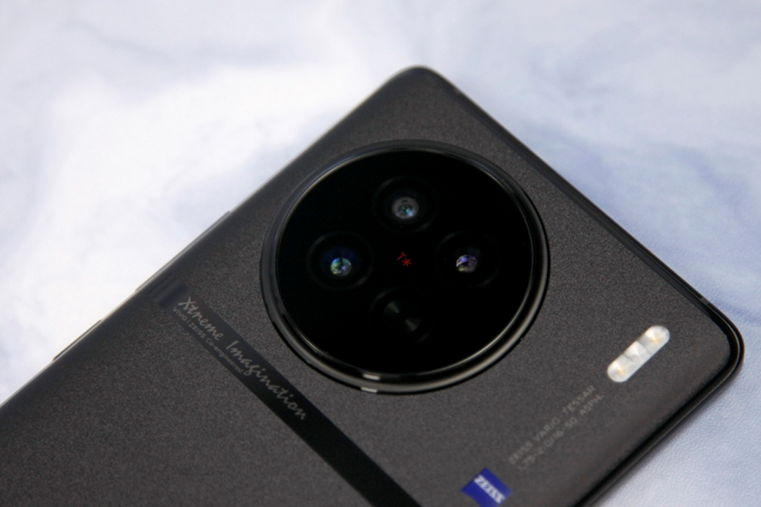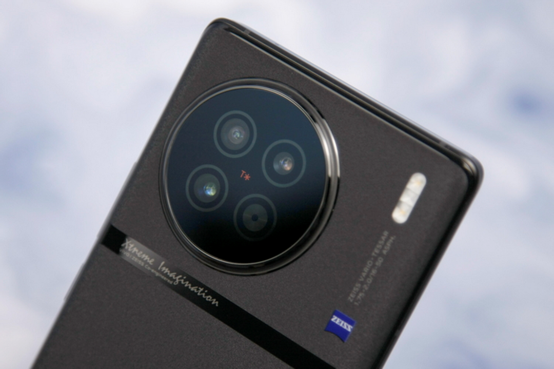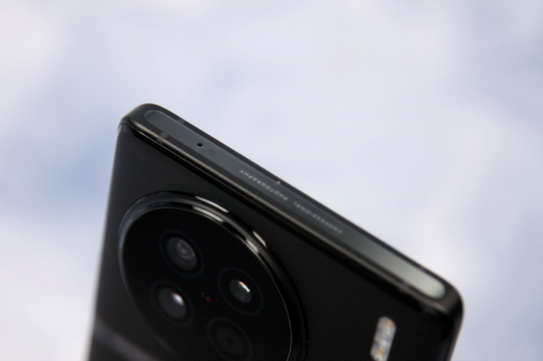 何谓“缎带云阶”?正如大家所见,X90的后摄模组被一个圆形的、带有蔡司T*标识的玻璃饰板包裹,同时整个饰板的周边则采用了圆润的流线型凸起边框,来对其进行固定和强调。很显然,这是继承了X80系列的经典元素,同时也凸显了X90的“影像旗舰”身份。