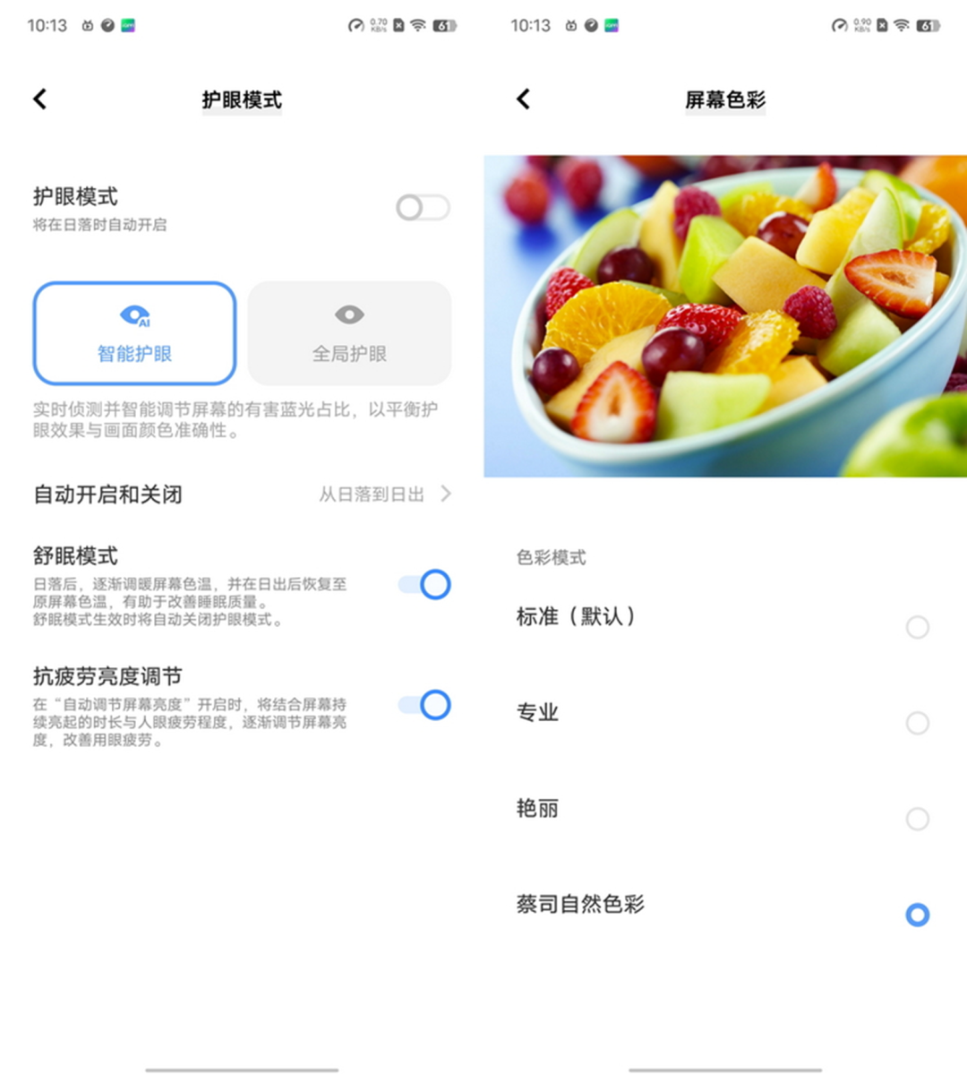 除此之外,X90这块屏幕还支持目前业界最高的2160Hz PWM高频调光,并实装了基于天玑9200的芯片级智能低蓝光技术。可以自动识别每帧画面里的蓝光信号,并能通过实时调整屏幕色温来减少有害蓝光的发射率,从而达到更加护眼、长时间观看更舒适的作用。