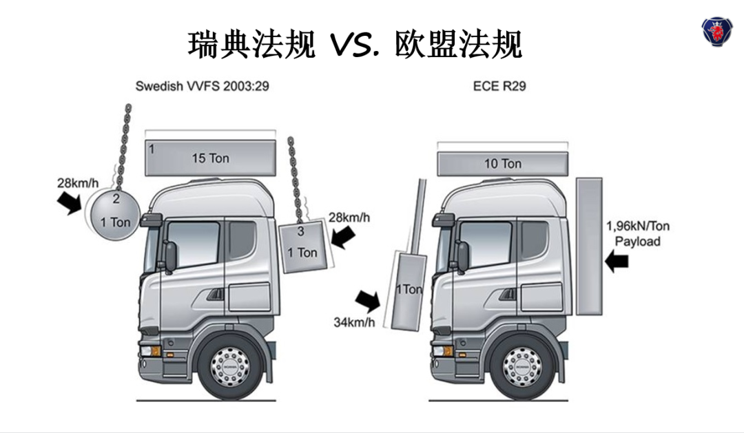 而且斯堪尼亚车辆驾驶室的安全评测执行的是比欧盟ECE R29标准更为苟刻瑞典的VVFS标准,让驾驶者可以更安心的驾驭,车辆也能够在危险中给予驾乘者更多的安全保护。
