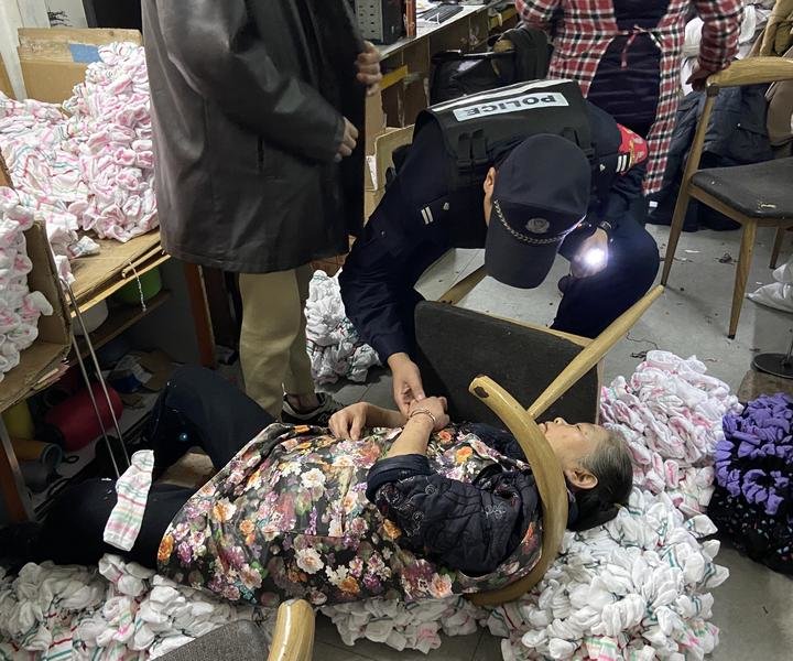 当晚,诸暨市公安局大唐派出所接到群众报警称,在袜厂里上班的老奶奶突然晕倒在地。民警王银永火速赶往事发地点,发现一位七旬老太正躺在地上抽搐,四肢僵硬。“‘阿姨,能听到吗?”王银永蹲在地上询问,但是由于老人处于失语状态,无法得知个人和病情信息,民警立即拨打120急救电话。在等待医护人员的过程里,有一定急救经验的王银永决定轻轻握住老太太下巴,用食指抵住老人的牙齿,防止老太太因抽搐咬到舌头造成更大的伤害。医护人员到达后,确认老人系癫痫发作,医生和民警全力进行现场施救,不停地揉搓老太太的腿和胳膊。