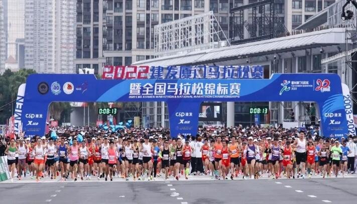 跑步爱上一座城!11月27日上午7:30,2022建发厦门马拉松赛暨全国马拉松锦标赛鸣枪开赛。二十载万众并肩,参赛选手自厦门国际会展中心起跑开启42.195公里的征途,以跑共庆厦门马拉松20周年。