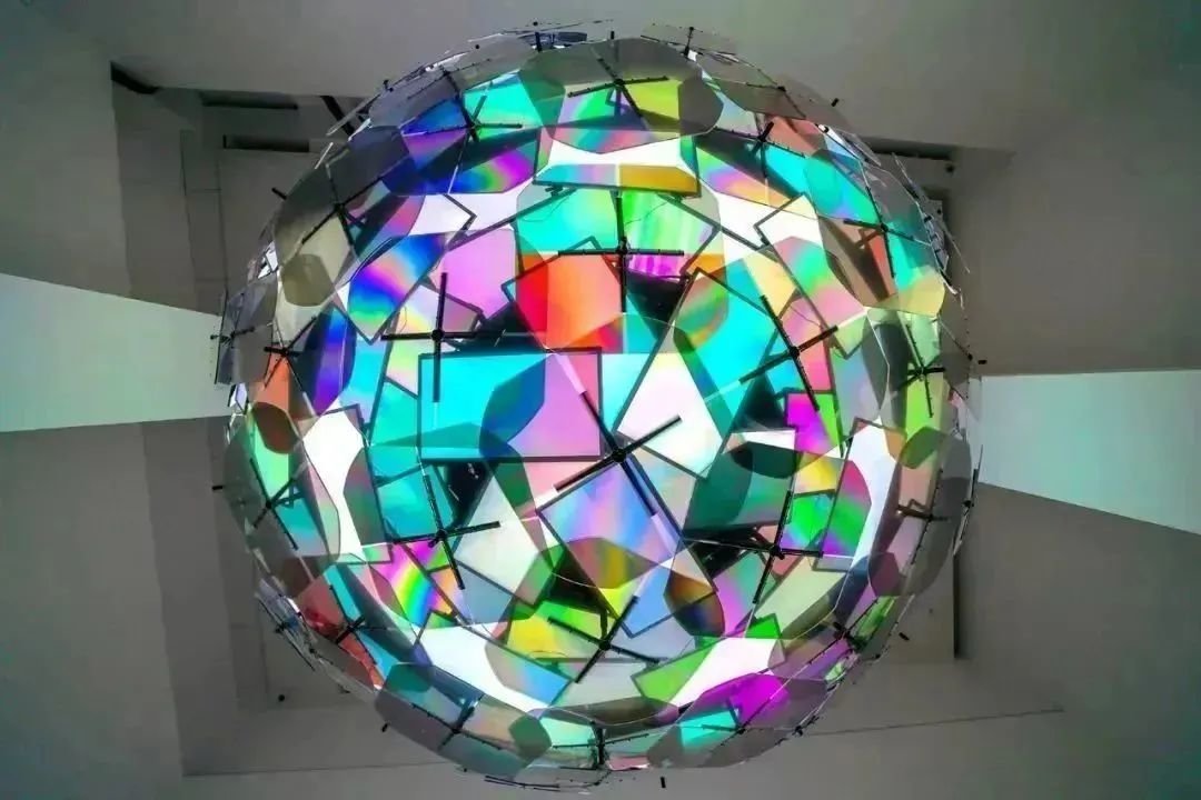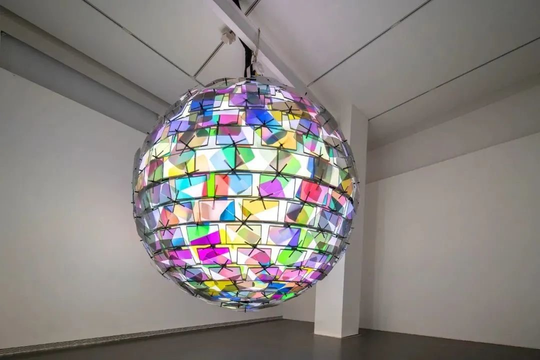 ▲ 王郁洋,《人造月2》,装置,偏光镜片、电机、液晶显示器、电脑,直径400cm的球体,2020年