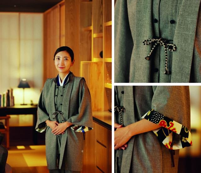设计方面,除了抓人眼球的建筑、室内设计,星野在服装设计上也花了很多心思。SOU·SOU 为“虹夕诺雅 东京”设计了既有和风要素,又能像夹克一样方便行动的员工工作服,这款工作服外表看上去是纯色的基本款,内衬隐秘地藏着华丽的纹样。“虹夕诺雅 东京”提供给住宿客人穿着的旅馆休闲服设计,则来自现代和服设计师斋藤上太郎,这款休闲服采用了 T 恤内搭,准备了不需要太多技巧就能系好的简易版腰带,让第一次接触的人也能轻松体验和服的乐趣。