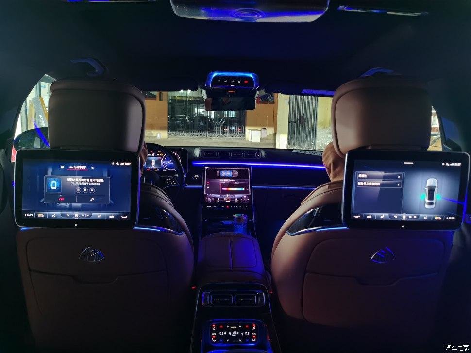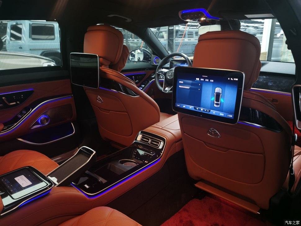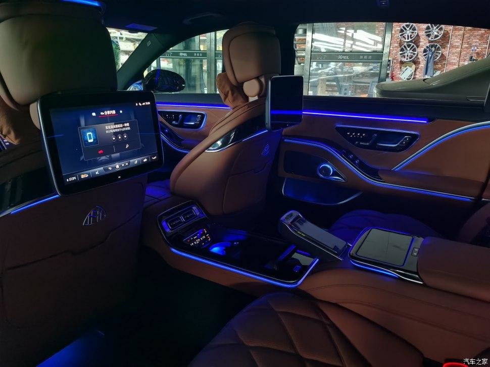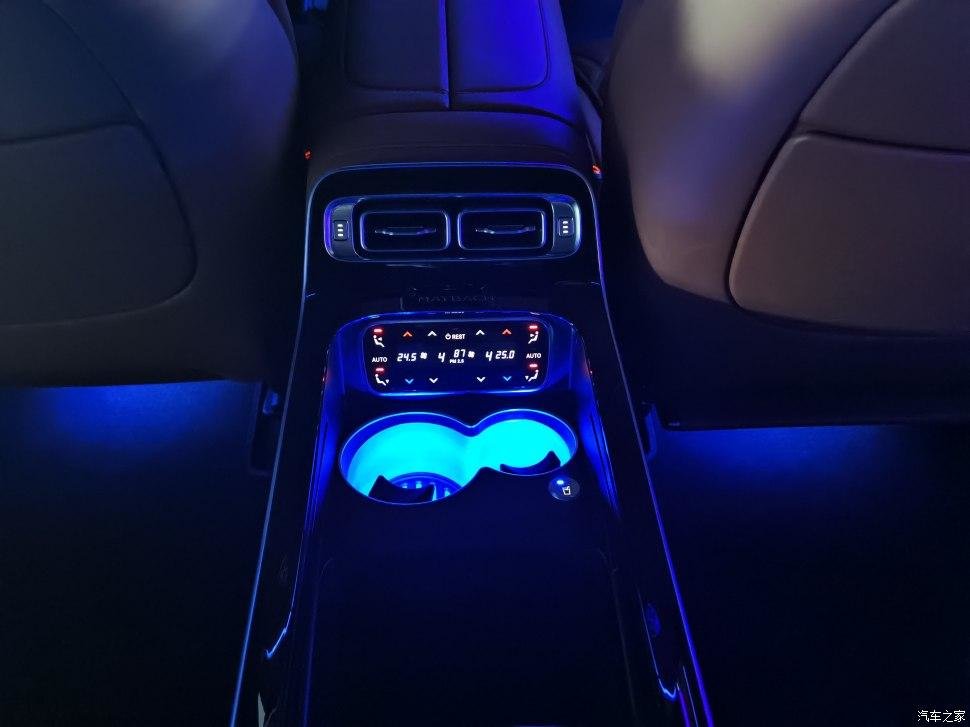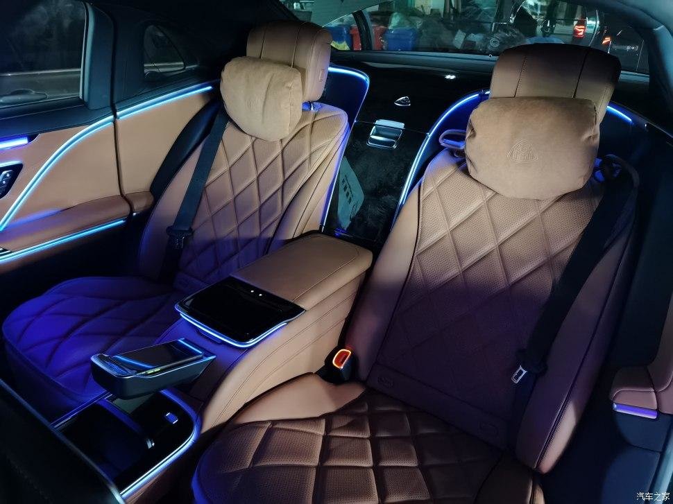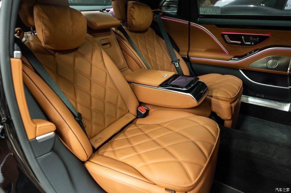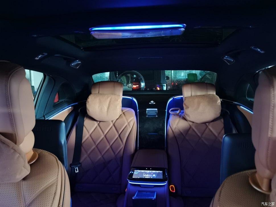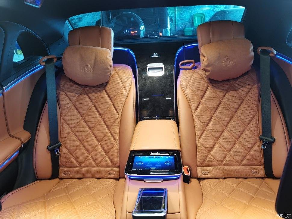 后排改成两座,用长条马鞍从中间隔断,分隔开两个独立的座椅空间,进一步彰显迈巴赫的尊贵身份。