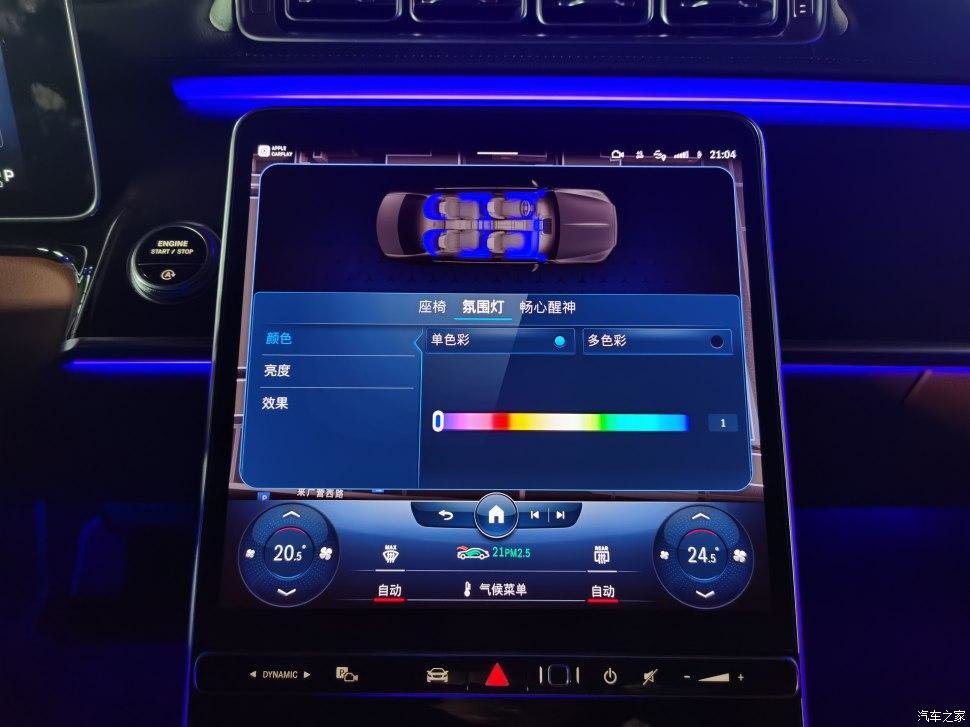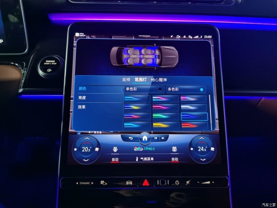 原厂主动式氛围灯,由263个可多色渐变的LED光源组成,每隔1.6厘米就有一个LED光源,照明效果比原车的明亮10倍。