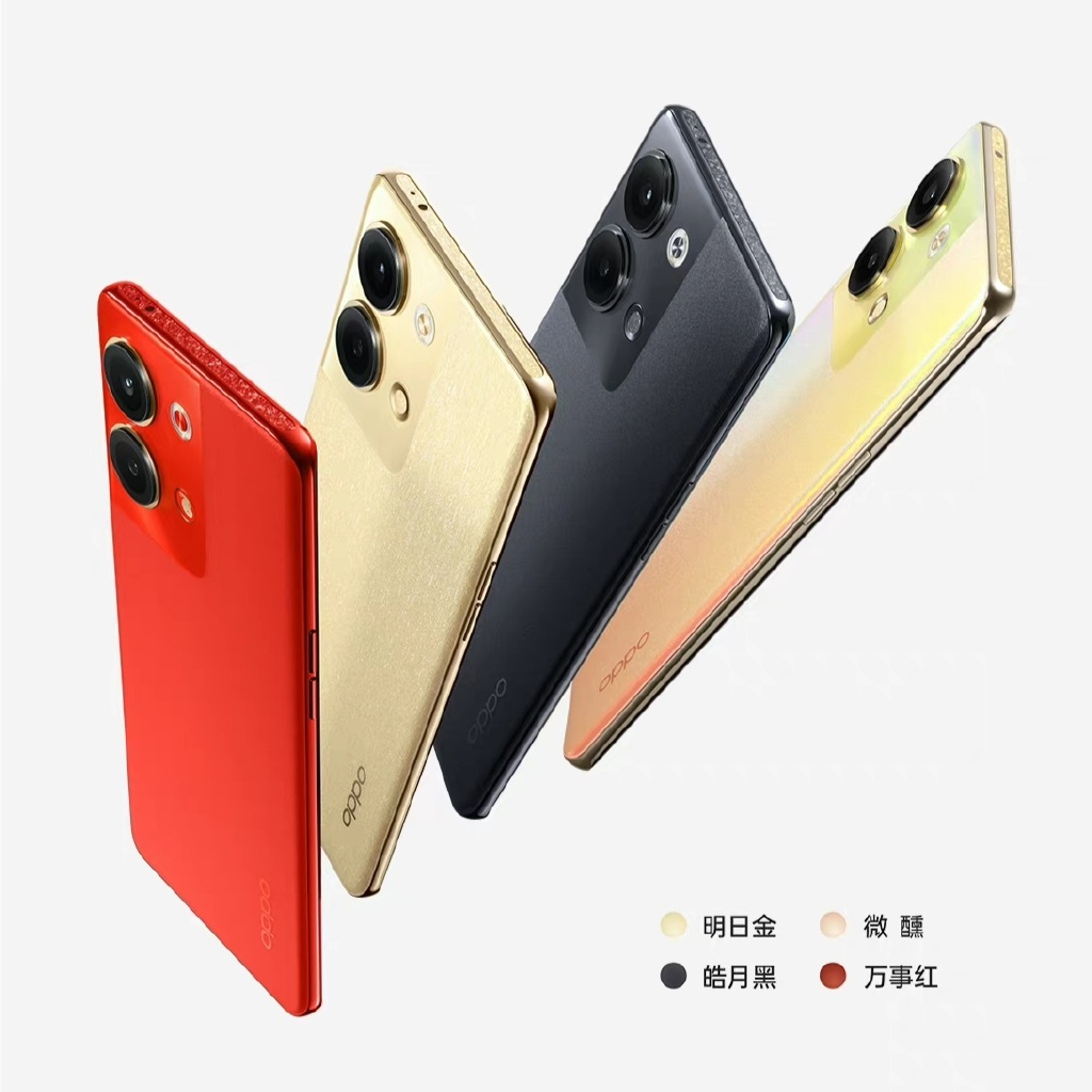 OPPO Reno9提供了明日金、皓月黑、微醺、万事红等四种配色,针对不同的配色提供了专属工艺,例如在明日金上采用了金丝琉璃设计,在机身背面呈现出拉丝质感,配合上金色工艺,提供了视觉尊贵感,在阳光映衬下能呈现出bilingbiling的高级质感。