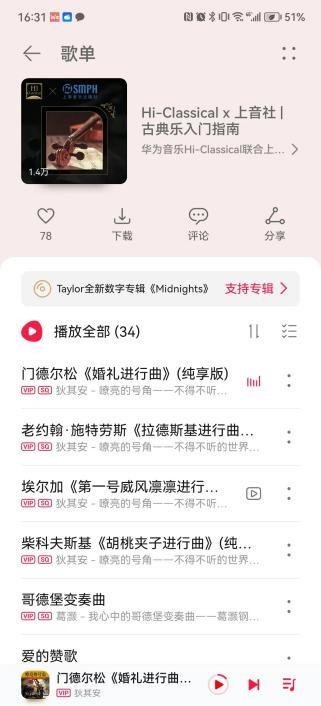 华为音乐还与上海音乐出版社推出了“古典音乐入门指南”歌单,从门德尔松、约翰施特劳斯到柴可夫斯基,每首都有代表性,每一首听一遍就会让你入坑。