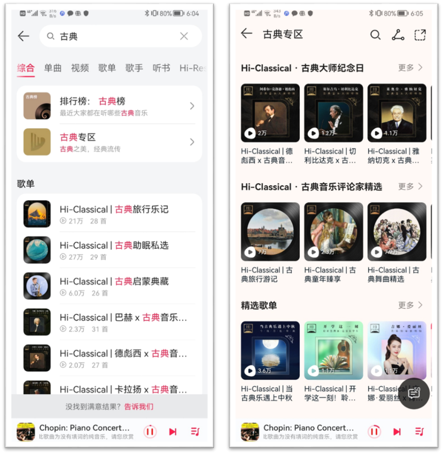 如果不知道听什么,建议大家上华为音乐Hi-Classical古典专区,直接跟着歌单听。华为音乐与古典音乐领域权威专家合作,如资深音乐评论家陈立、古典音乐大师田艺苗等,推出了“古典音乐评论家”精选歌单,有不同主题、不同风格的经典作品。