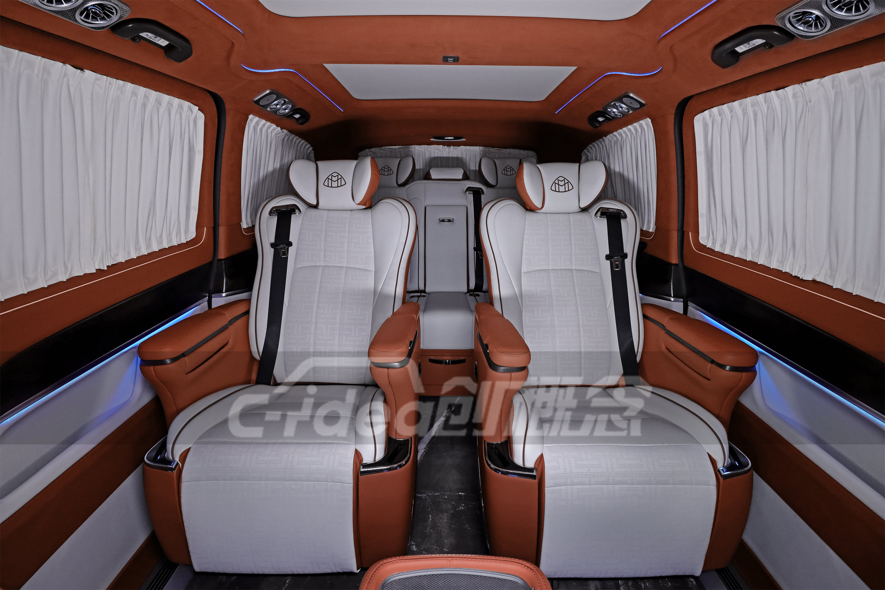乘客舱铺设蜂窝镜面地板,细腻有光泽,防水防滑,耐潮耐腐蚀。主副座椅后加装折叠桌,合理利用,收放自如。