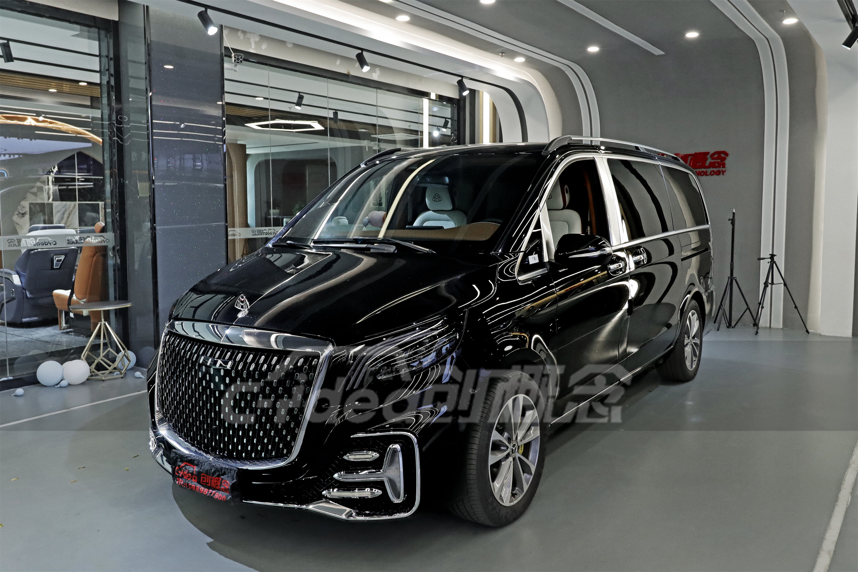 奔驰一直都是车圈中豪华的代名词,而此次全新一代的奔驰V260,在放大豪华感的同时,对智能化表现和乘坐舒适性,也进行了全方位的升级。定制星际一繁星款包围套件,满天星的前脸,龙鳞般的亮片,“双M”立标,三道流水大灯,镀铬点缀,让整个车更加的豪华稳重。外观给人第一眼的感觉就彰显出大气的一面。让我们一起来看看改装后的商务座驾。