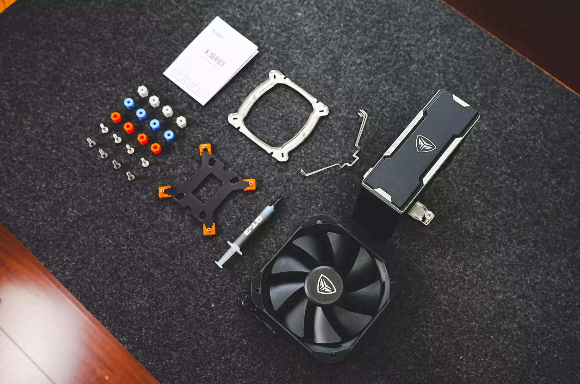 散热器我用的是超频三K4挑战者。该散热器的颜值和性能表现都很不错,其采用搭载4根6mm超逆重力热管,可有效抵抗重力影响,这样在安装的时候,无论平躺横放还是竖直放置都可以发挥最大散热效能;底座也是采用了全新的特殊热管直触工艺底座,用于增强导热效率。