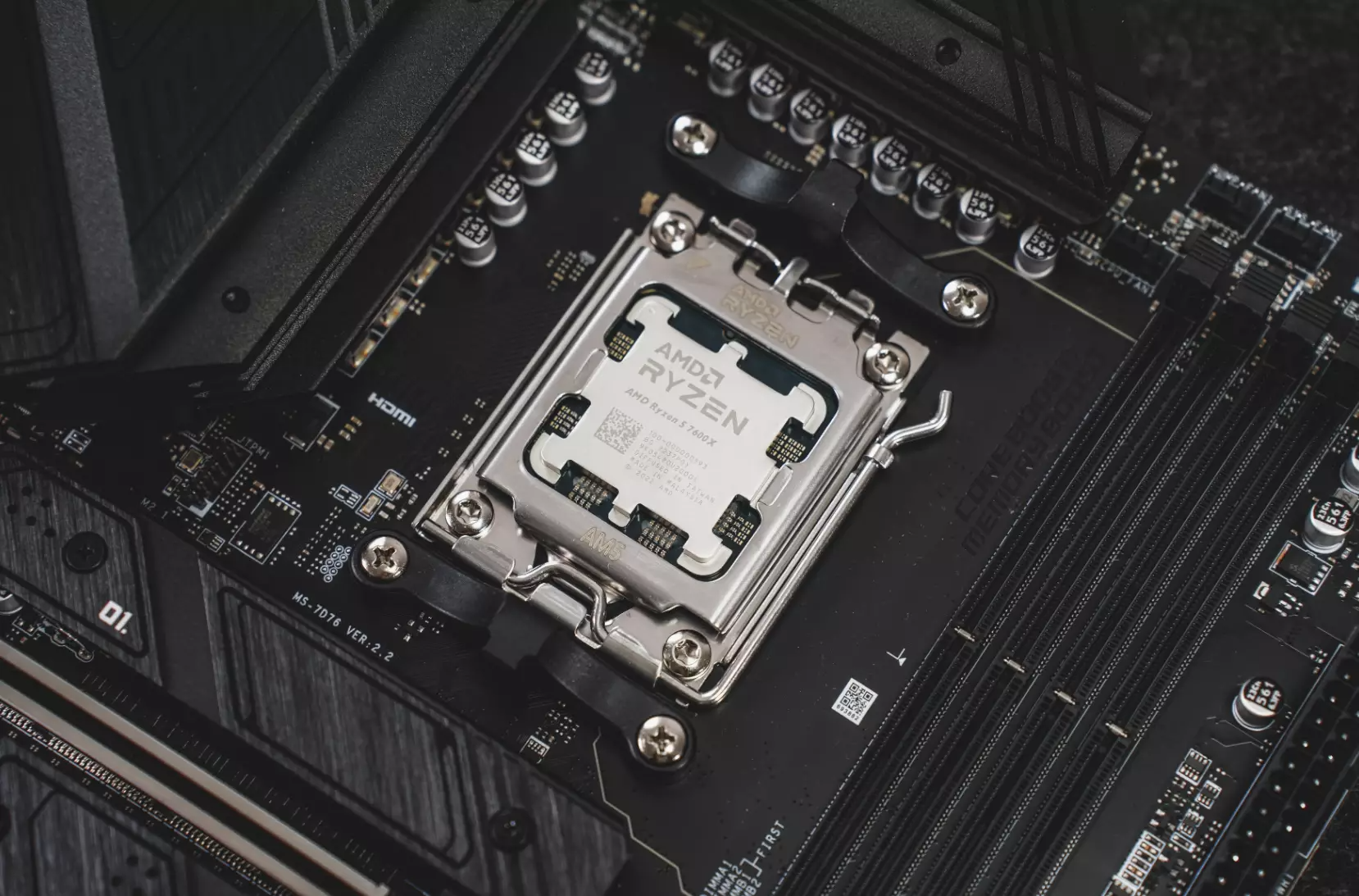 然后是安装主板。我选择的CPU+主板套装是比较流行的:AMD锐龙5 7600X+B650主板。要知道7600X经过调价后,最低不到1699就可以入手;与B650主板配搭性价比非常不错。
