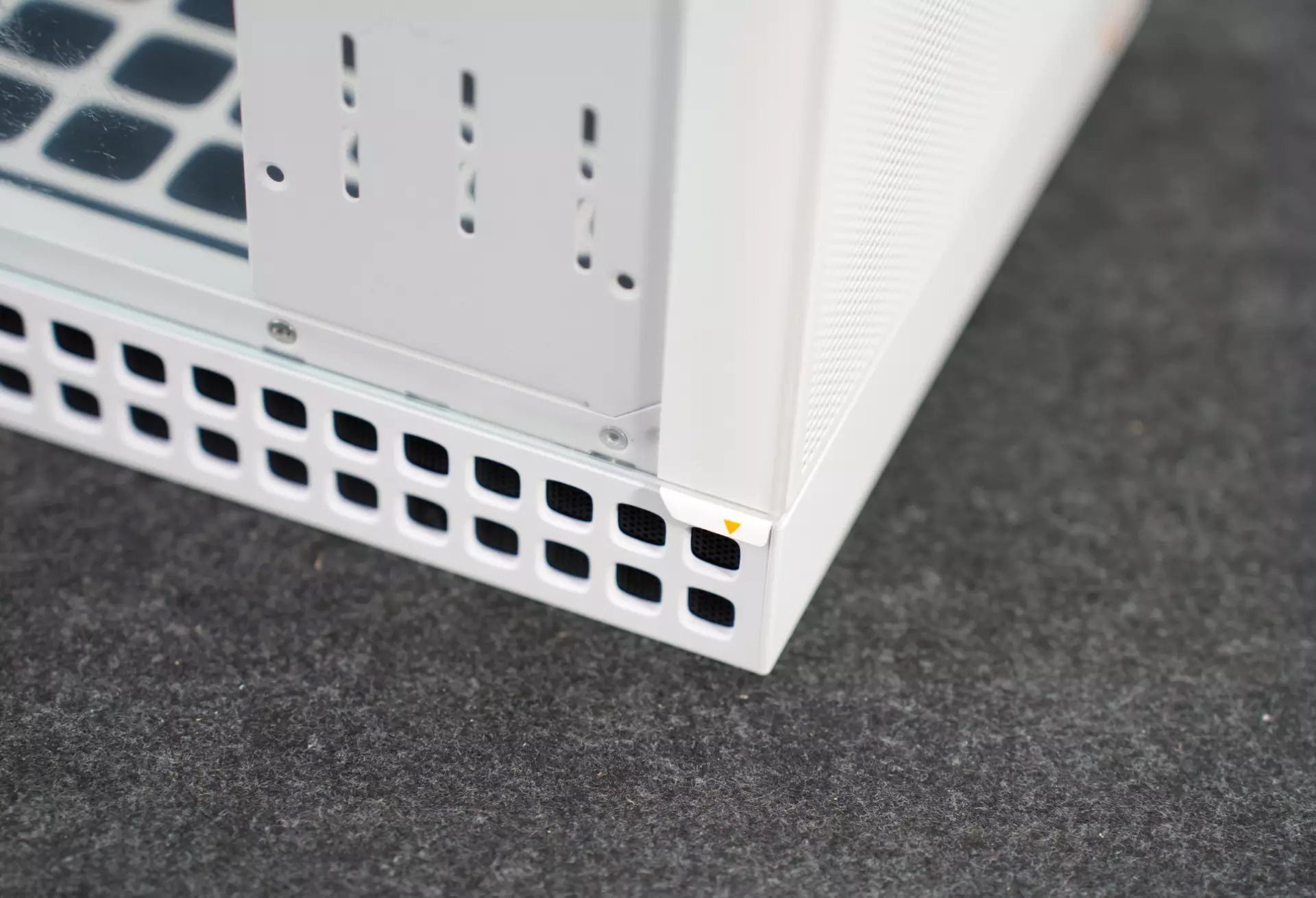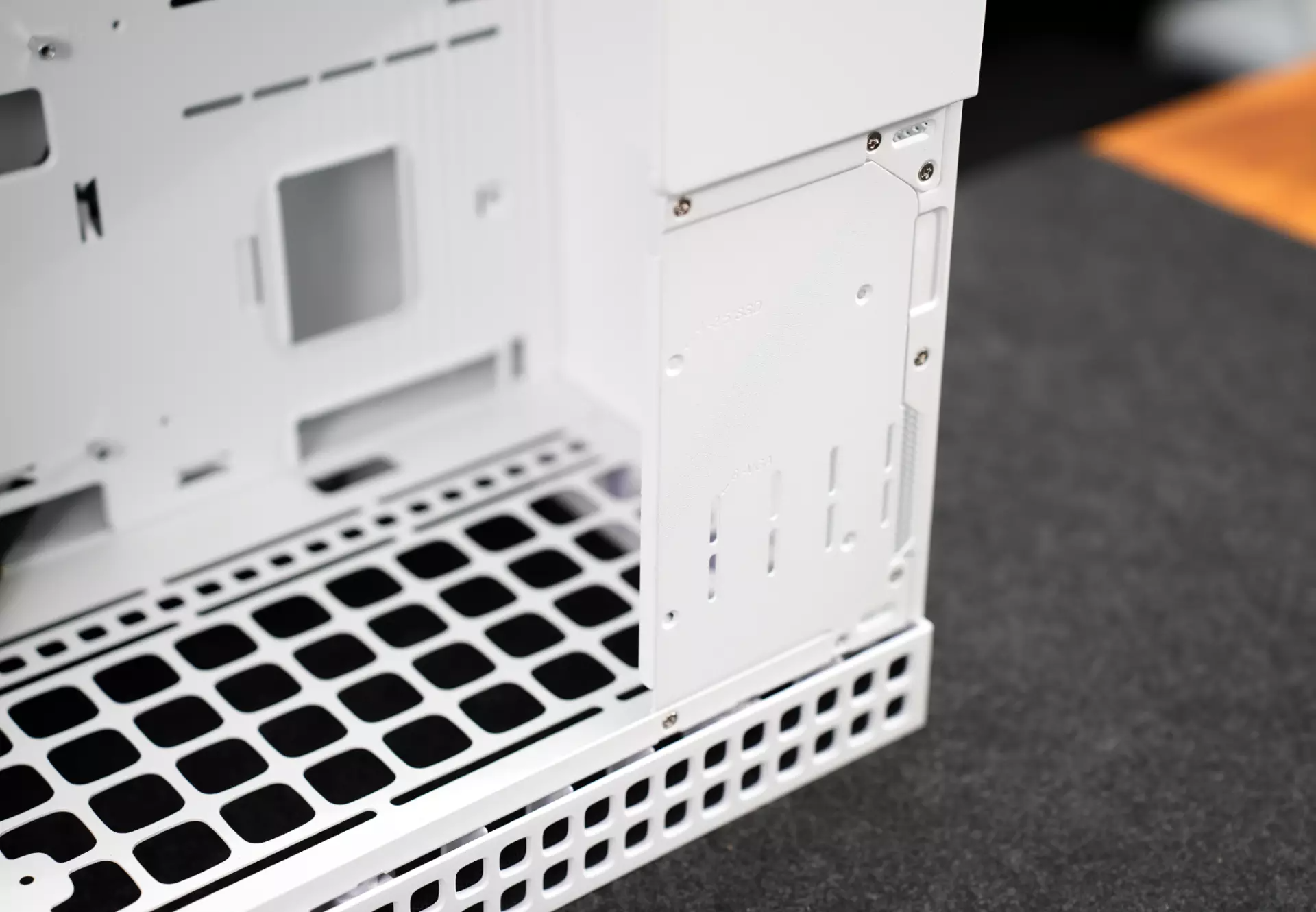 底部支撑与很多机箱也不一样,没有“四个脚”的传统设计。可以装入3个120mm风扇\2个140mm风扇,或360冷排。