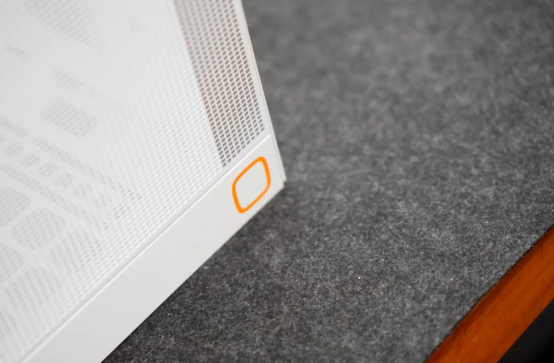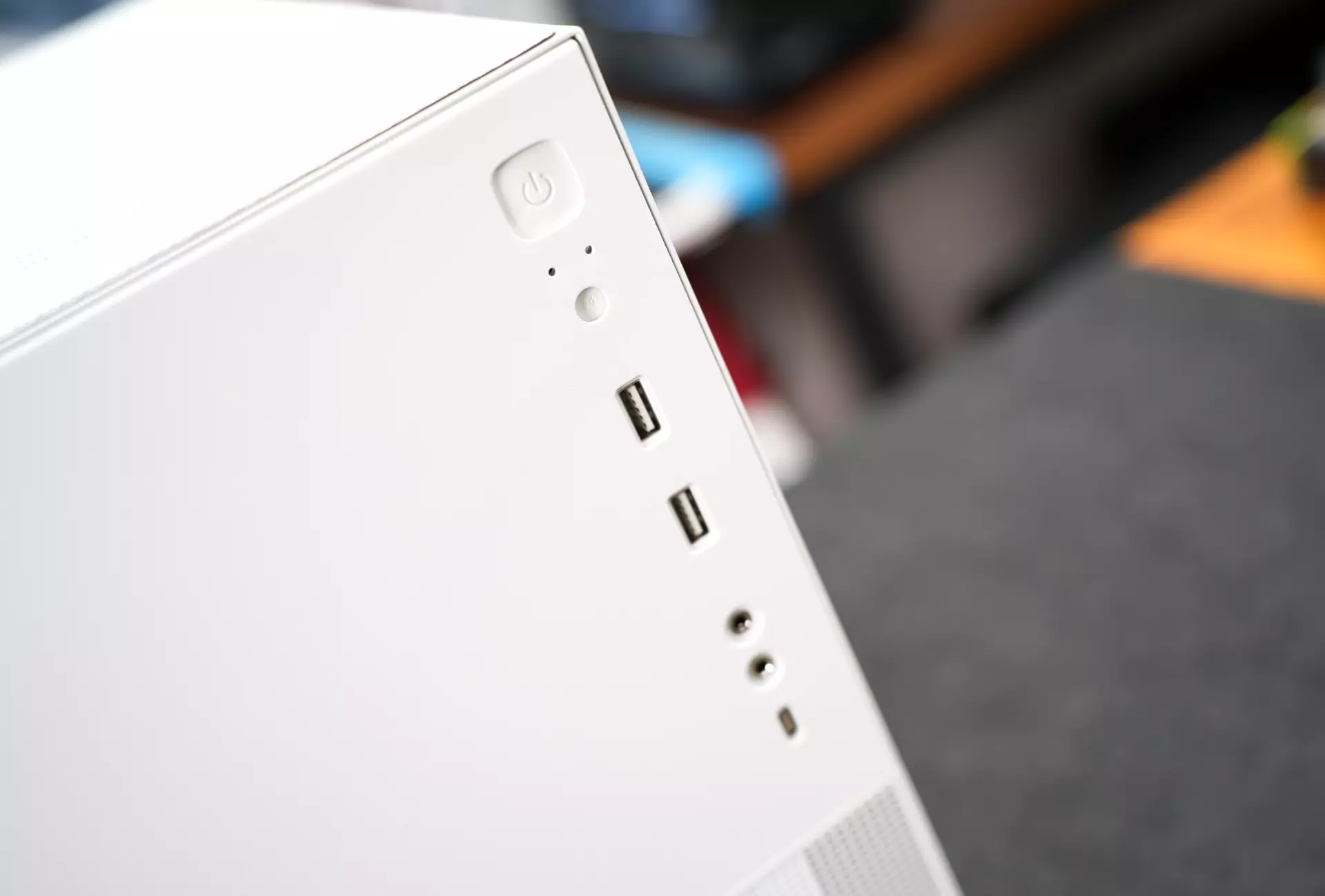 机箱I/O接口在前面板右侧,从上到下分别是电源、重启、USB 3.0、3.5mm音频以及10Gbps带宽的Type-C接口。