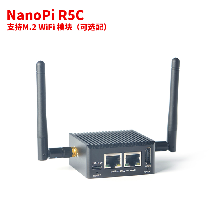 IT之家了解到,NanoPi R5C 可选扩展 M.2 WiFi 模块(RTL8822CE),支持 802.11a / b / g / n / ac 协议,传输速率为 276Mbps,接收速率为 156Mbps。该板还带有 2 个 USB3.0 接口,以及 1 个 M.2 无线网卡接口。