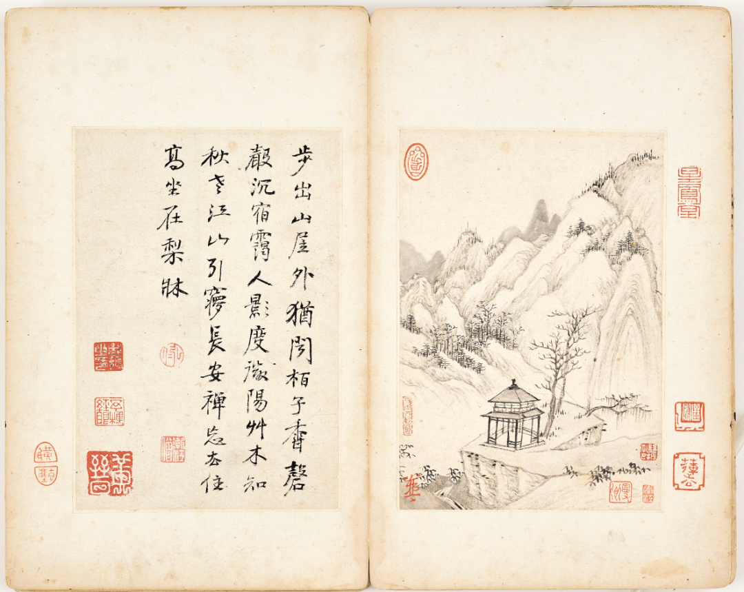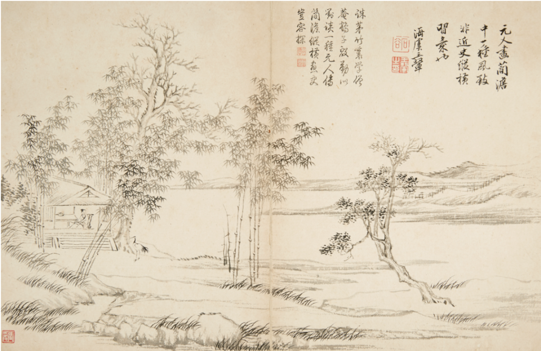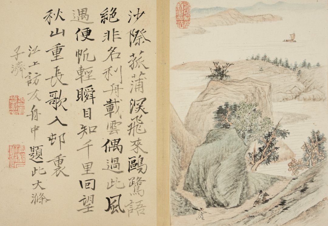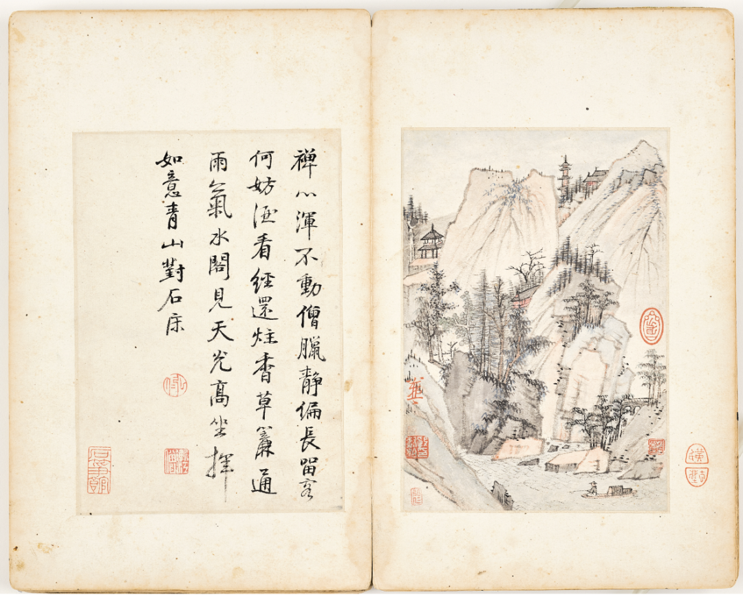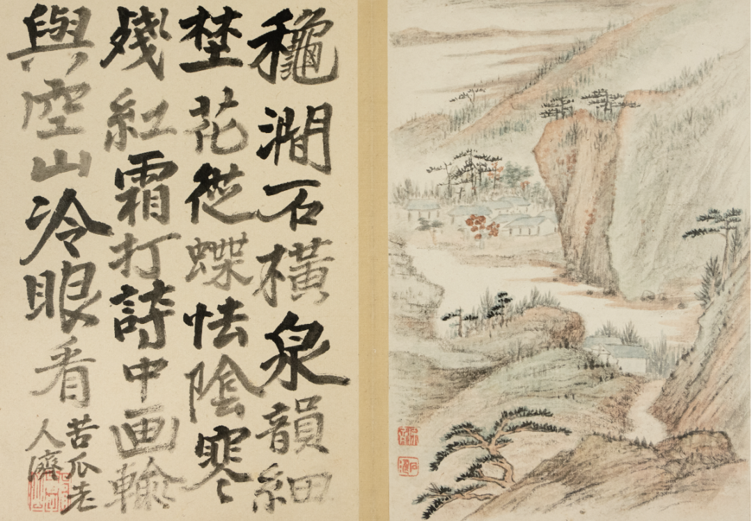 弘仁,《书画合璧册》局部,18.7x13cmx19,册页,纸本设色,清代,私人藏