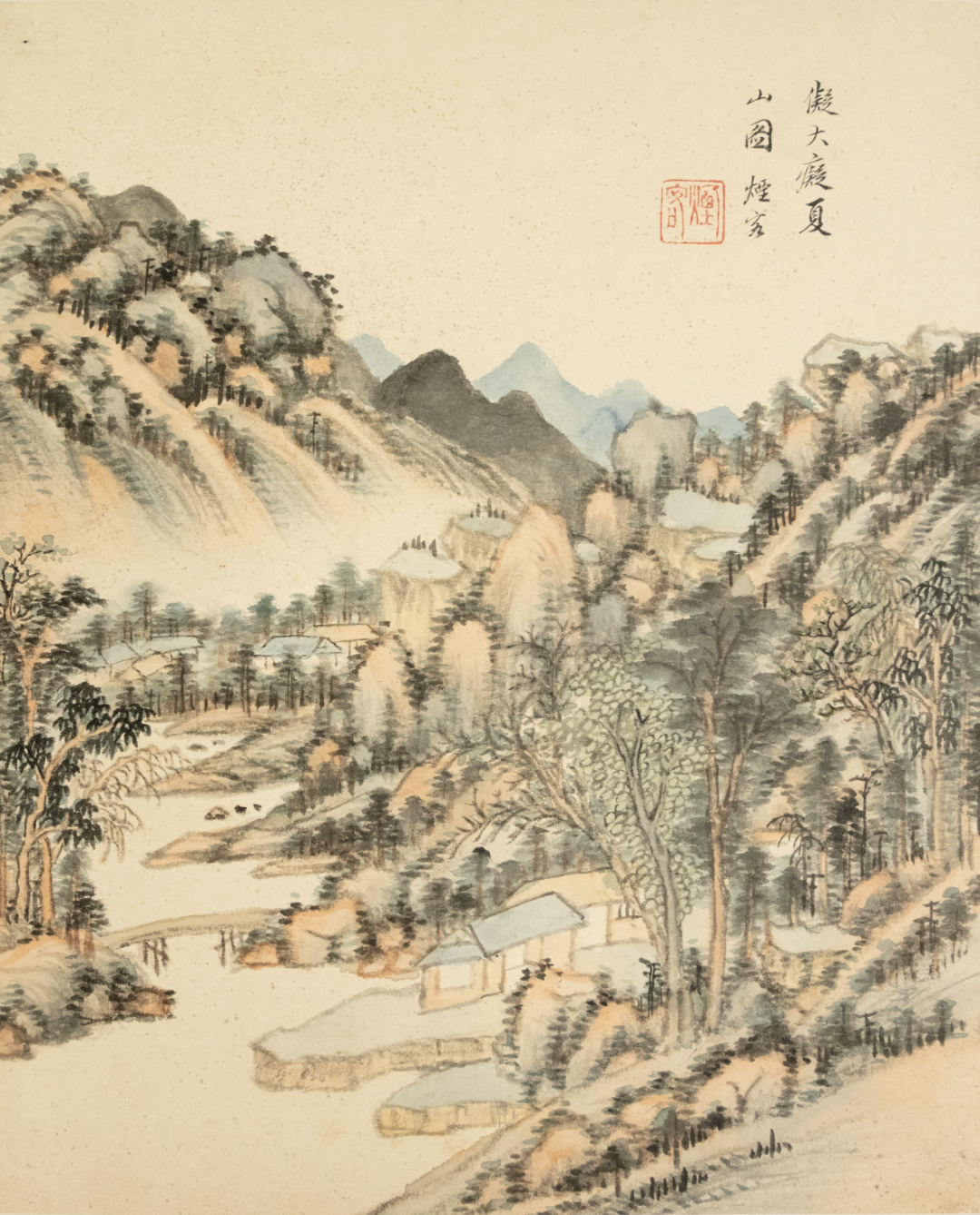王时敏,《仿宋元山水册》局部,34x27cmx10,册页,纸本设色,1647