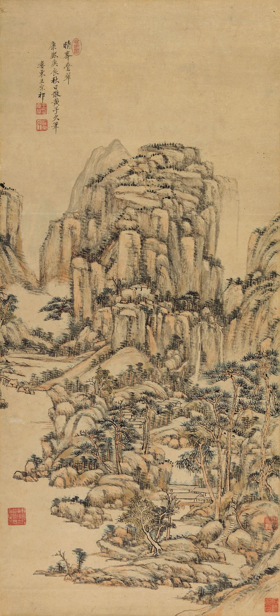 王原祁, 《晴峰叠翠》,102x46.5cm,立轴,纸本设色,1700