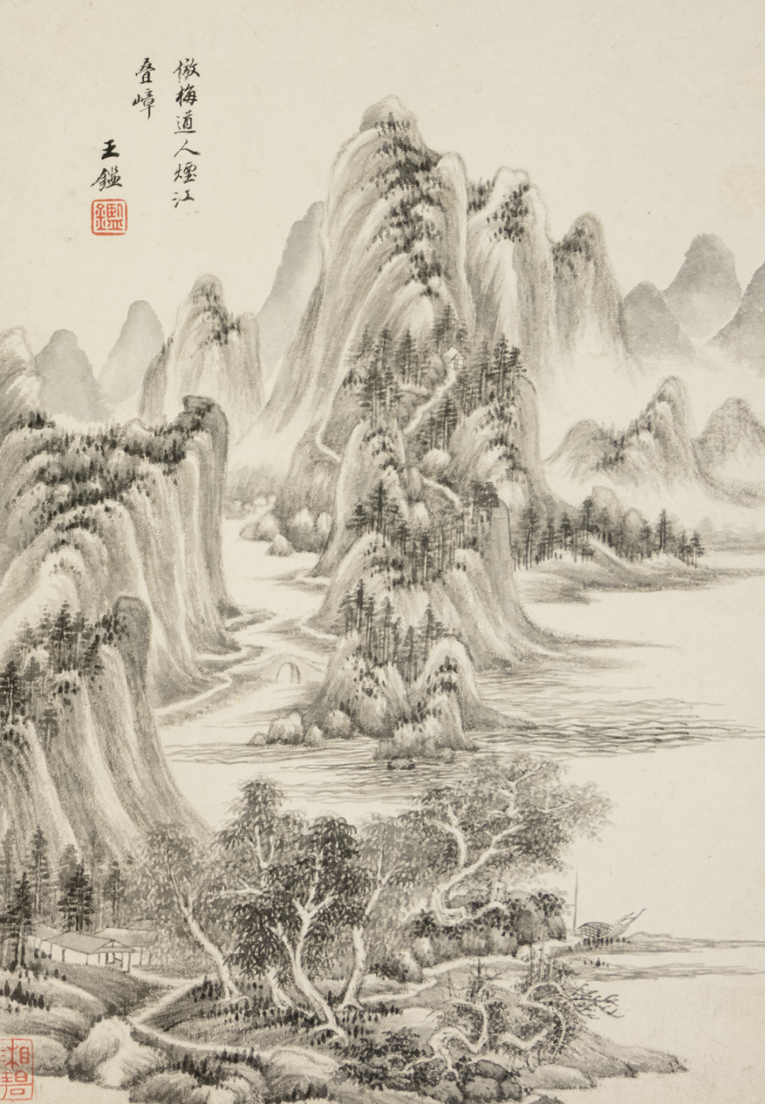王鉴是明代文人王士贞的曾孙,其祖父王士骐为文坛盟主。王士贞十分赏识董其昌,王士骐也与董其昌为同榜进士,王鉴在画艺上曾得董其昌亲授。王鉴与王时敏同为江苏太仓人,因此,两人不仅是同族、同乡,还算得上师出同门。