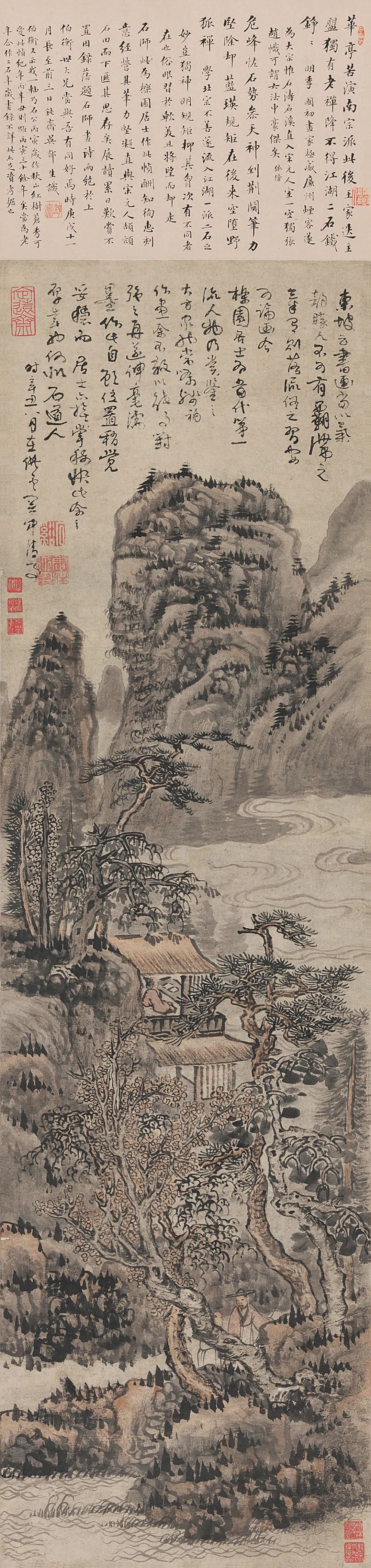 髡残,《为周亮工作山水》,102.5×29cm,立轴,纸本设色,1661