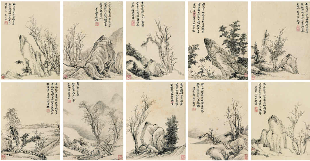 吴历,《古木竹石图册》,30x22.5cmx10,册页,纸本水墨,清代