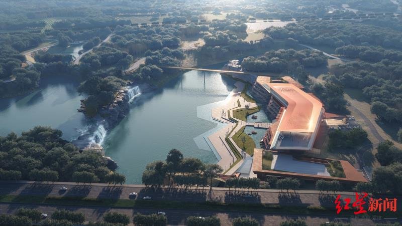 等拿到任务书时,郑勇发现,2024成都世园会主展馆前的摩诃湖与绛溪河存在大约10米高差,湖水倾泻到绛溪河,形成瀑布;酒店的选址则位于绛溪河另一侧,可以“看到瀑布”。