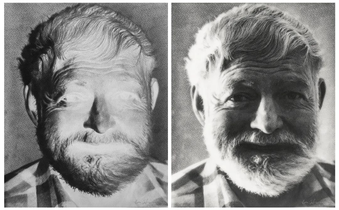 ▲ 李舜 《肖像-Ernest Miller Hemingway》 纸上素描·8×10英寸黑白大画幅底片 25.4×20.32cm×2 2017