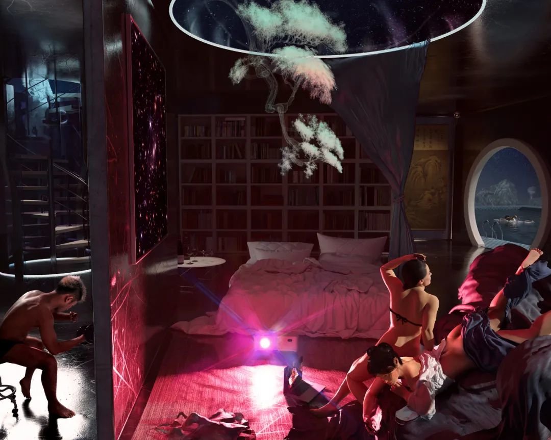 ▲ 邵文欢《“是什么使今天的生活如此不同,如此充满魅力?”》 3D虚拟建模、摄影、数字拼贴、UV输出三明治,100x80cm,2011-2022