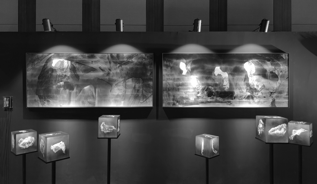 ▲ 周子杰 《补阙》 艺术微喷 190x80cm UV打印在亚克力灯箱 20x20x20cm 单屏影像 4min30s 2021-2022