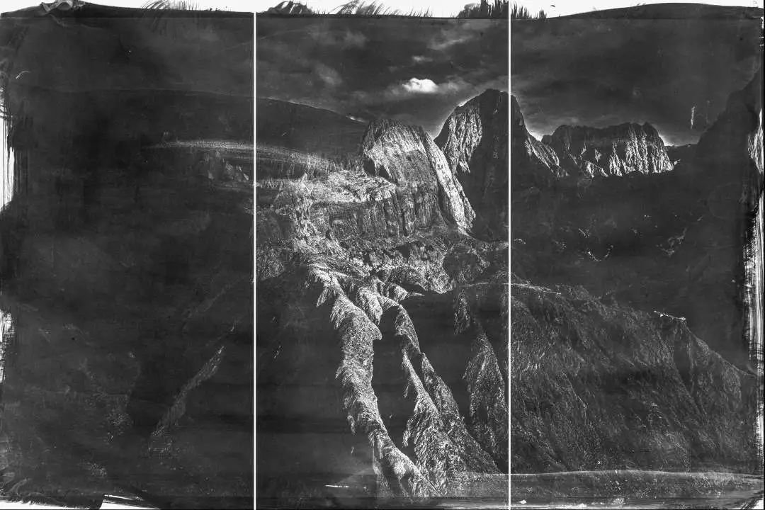 ▲ 刘钢强 《山巅之下是他山》 新铁银暗房接触印相 哈内姆勒铂金纸 120×180cm 2022