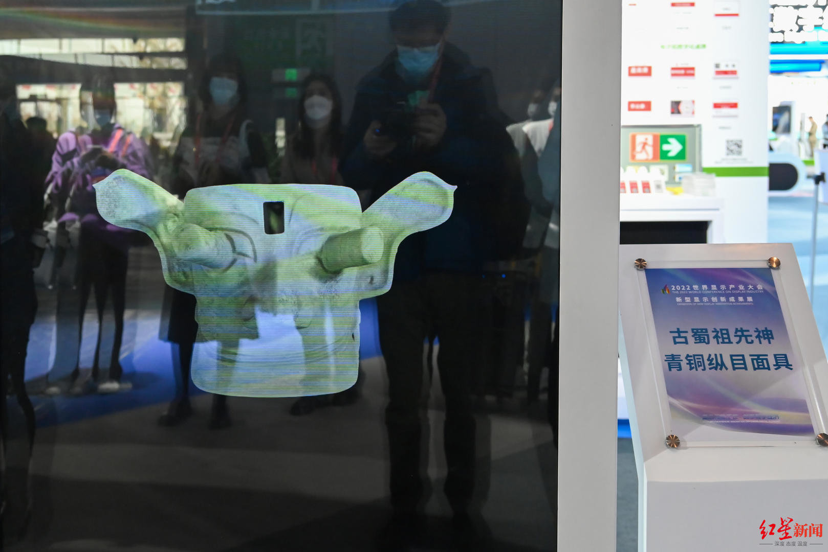 ▲新型显示创新成果展上的3D全息投影青铜纵目面具
