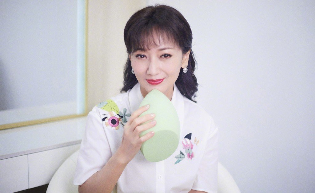 2022年11月30日,赵雅芝发布一组白衬衫搭配绿色半裙日常写真 ,手拿各种大号美妆工具。