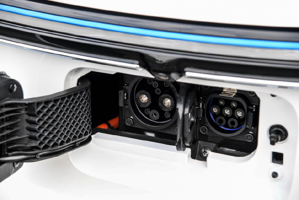 硕大的五菱Logo也是可以发光的,并且打开后可以看到两个充电口。这是五菱晴空送给大家的第一个惊喜--快充,四座版五菱晴空搭载快充功能,从30%-80%只需要45分钟,并且也支持交流充电桩和家用220V转充电枪。