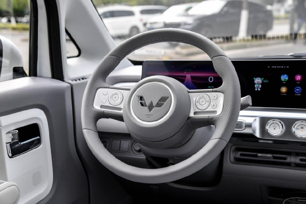 方向盘采用双辐设计,并且两边还有多功能按键,左侧按键用于控制仪表盘,右侧用于控制车机系统。在左侧多功能按键区域还发现两个空按键,进一步证实了五菱晴空未来会有更高级驾驶辅助系统的猜想。