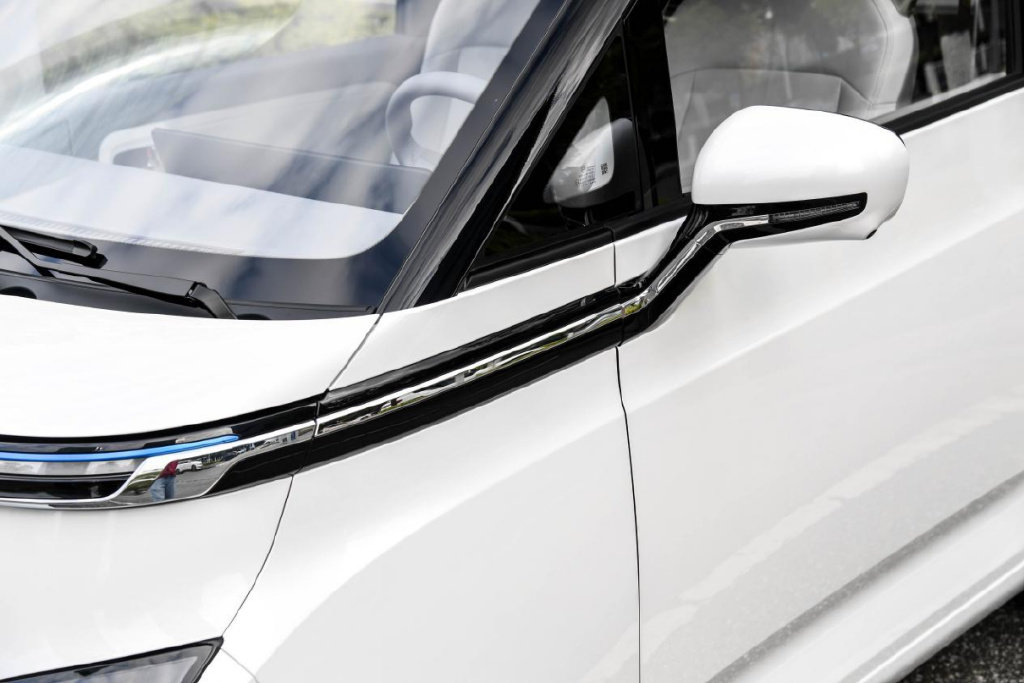 前方的LED灯带延长至后视镜下方,将左右两侧后视镜连接起来,进一步拉宽视觉效果。