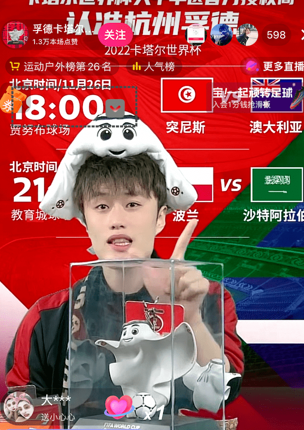 11月21日,世界杯开赛的哨声响起,拉伊卜这个IP也进入自己的黄金周期。开赛后,拉伊卜的销量快速爆发,日常霸榜“淘宝热趋”。而孚德CEO郭志浩透露,近期仅孚德直播间的日成交额最高就达近300万元,与此同时,拉伊卜中国授权商品的销售额已超过此前两届世界杯孚德在全球的总销售额。