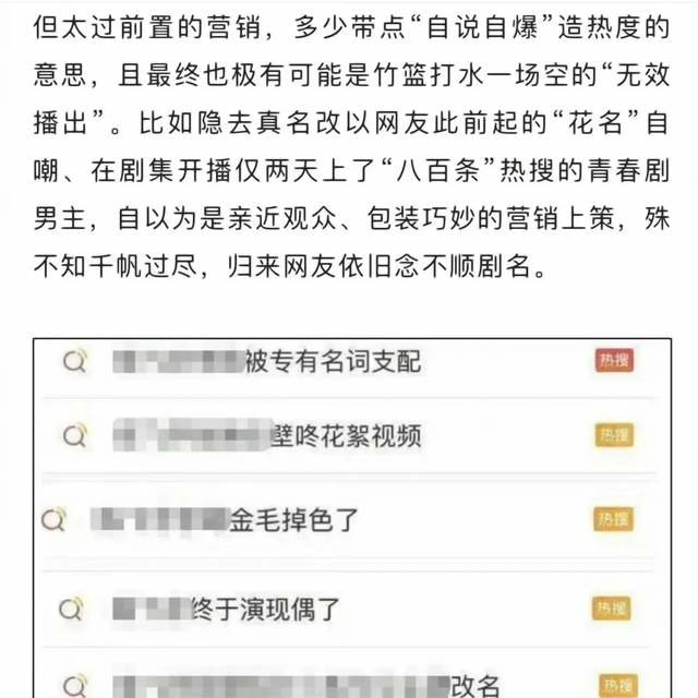 紧接着说,有些伪爆剧,依靠着粉丝占领热搜,制造一些假性繁荣,并且还特别举例说到底什么才是真正的爆剧,比如评分达到豆瓣7.5分以上的。最后,文章不忘拔高站位,展望了一下未来,希望有更多高品质的剧情产生。