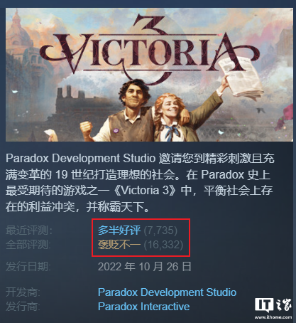 不过按照 P 社游戏的传统,一开始发售的《维多利亚 3》评价并不高,有“半成品”嫌疑,大家可以等一段时间再游玩。