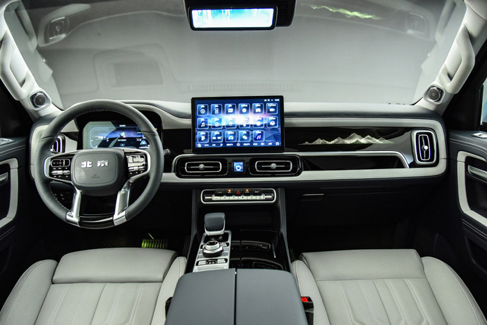 同时,新车还将提供分时四驱,可电控切换2H、4H、4L模式,以及蠕行模式、ATS全地形系统等提升越野能力的装备和功能。另外,新车还采用非承载式车身+四轮独立悬挂系统,并配备前、中、后三把差速锁,其中分动器可将扭矩放大2.54倍,拥有比较不错的越野能力。