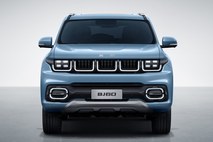 外观方面,北京BJ60首次采用了家族全新的3.0造型语言,前脸进气格栅采用了五孔式造型,并与两侧的LED灯组融为一体,再配合大量粗壮的镀铬饰条点缀,倒也大气魁伟,但与兄弟车型BJ40相比,新车偏向圆润的造型还是少了硬派越野SUV的那种粗犷气息。