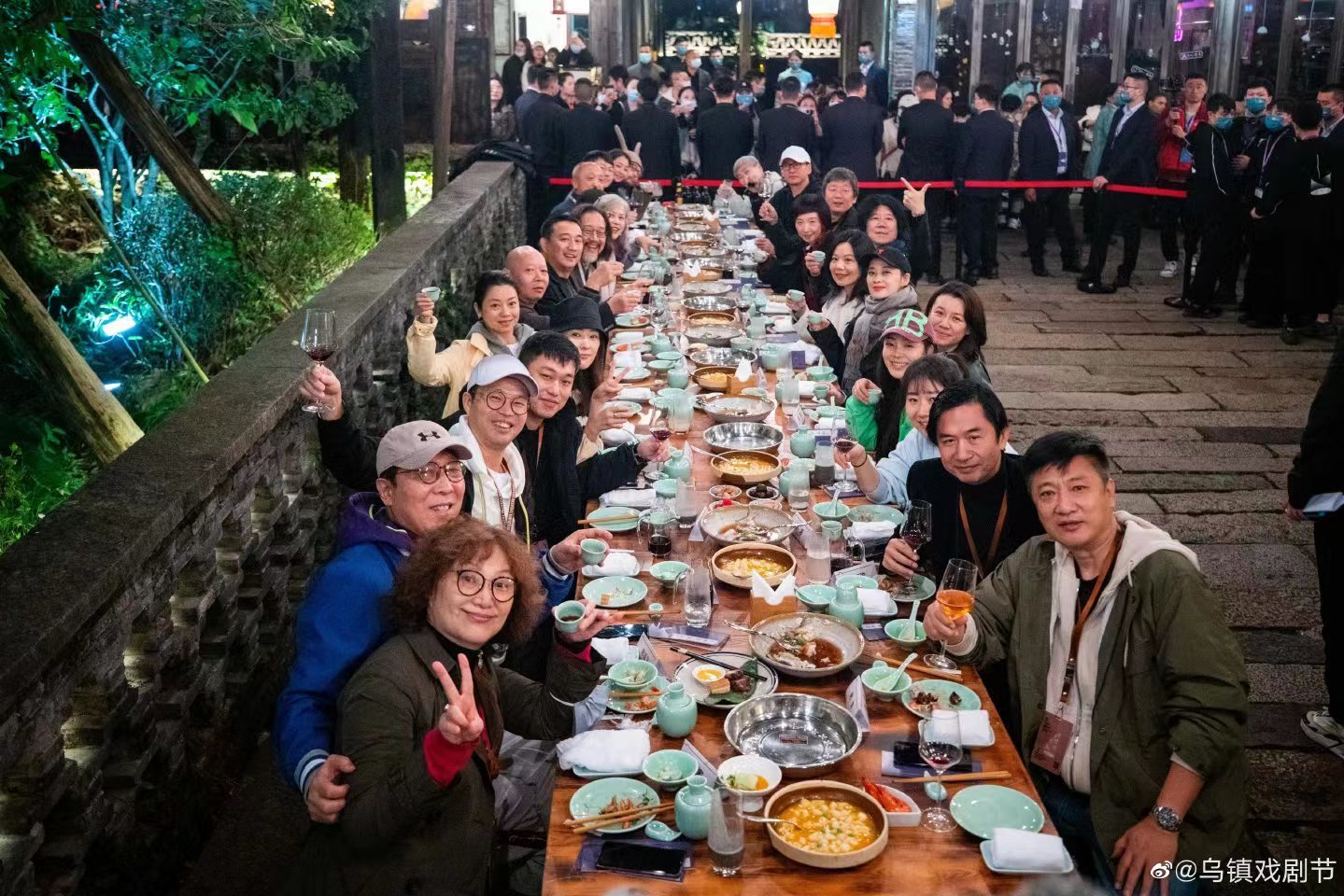 近日,乌镇戏剧节众星云集,各大明星艺人纷纷受邀前来,从网友拍摄的长街宴视频中可见,当日到场的除了赖声川、孟京辉等知名导演外,还有黄磊、何炅、马伊琍、张杰、谢娜等人。