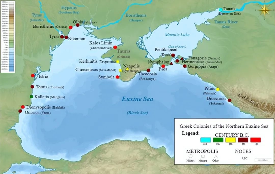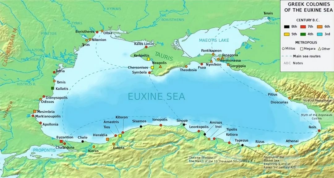 ▲希腊人的殖民地同样遍布黑海沿岸和克里米亚半岛