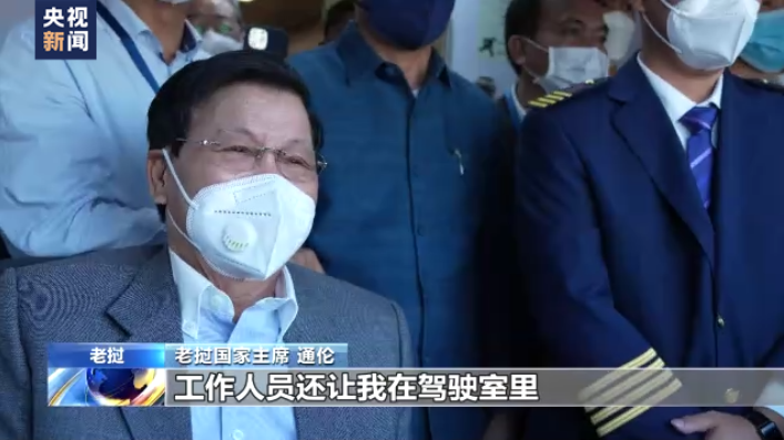 老挝国家主席 通伦:双方商定将要开始建设中老铁路后,我每年都要去视察铁路建设工地三四次,有时是两三次。中老铁路正式开通后,我先后三次乘火车到老挝北部省份,第一次去坐,大家还非常激动,工作人员还让我在驾驶室里和他们一起驾驶火车。现在乘坐中老铁路的火车我也是深有感慨,老挝也有动车了。