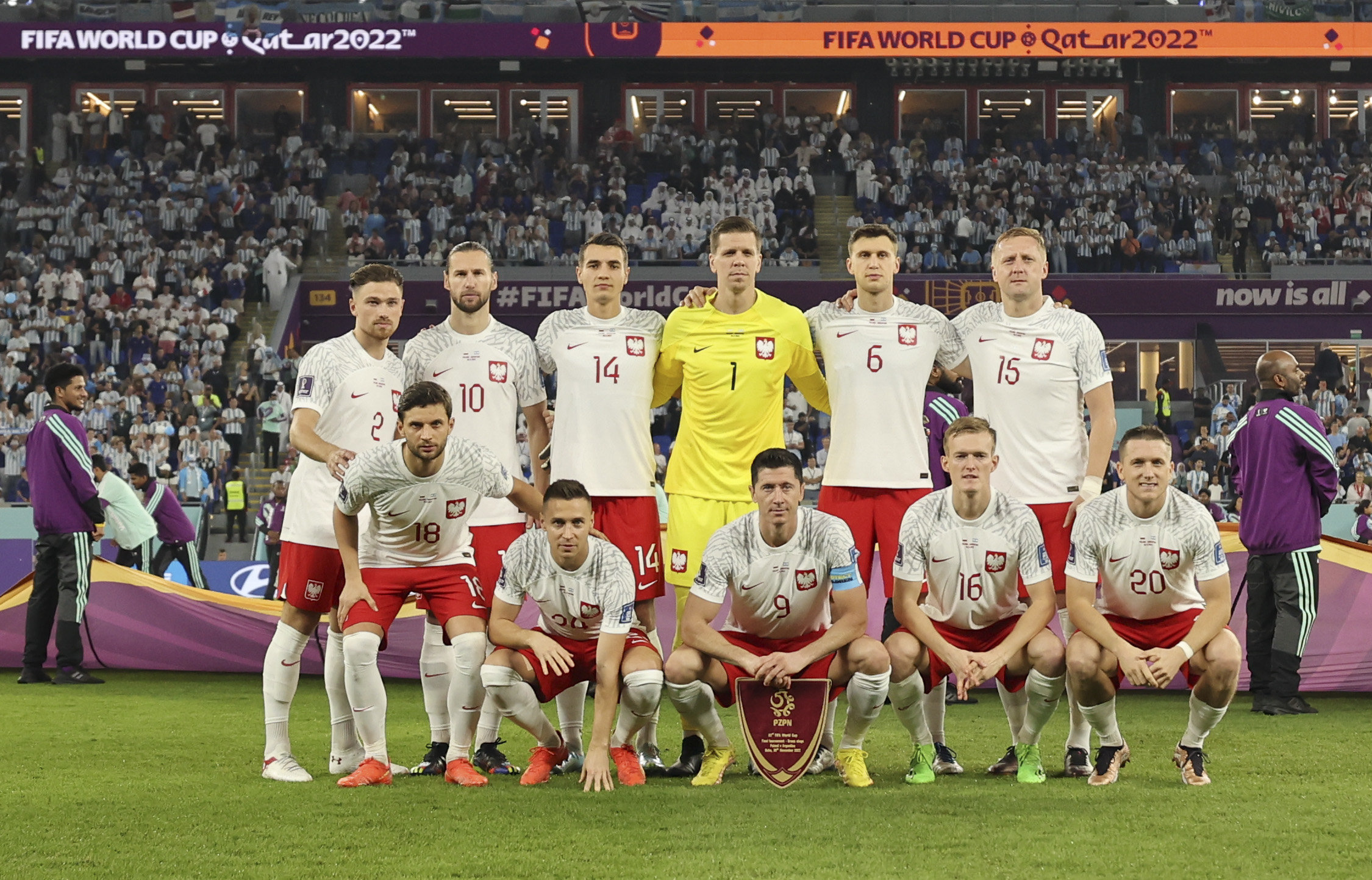 11月30日,波兰队首发球员在比赛前合影。新华社记者 曹灿 摄
